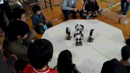講堂内でも、ロボット操縦体験や飛行機飛ばし、ペーパーカー等、楽しい実験がいっぱいで、子どもたちはあちらこちらとコーナーを回っています。