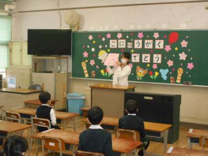 1年生の児童は、校長先生から担当の先生の発表を聞いた後、それぞれの教室へ行って自分の机の確認をしました。