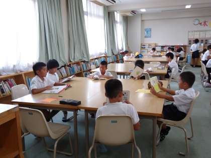 今日は図書室開放の2日目です。低学年から高学年までたくさんの人が来てくれ、みんな集中して読書をしていました。7月31日に3回目の図書室開放があります。ぜひ来てください。