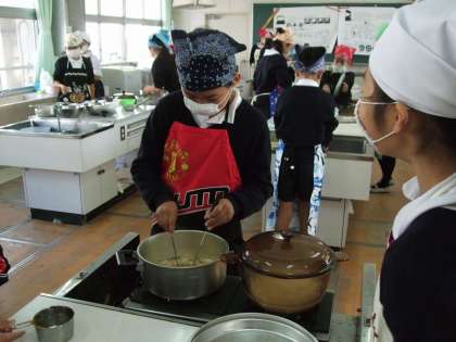 みんなで作ったご飯とみそ汁は、とても美味しかったようです。