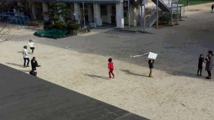 最後に出来上がったたこを、冬の澄んだ綺麗な青空に向けて飛ばしていました。