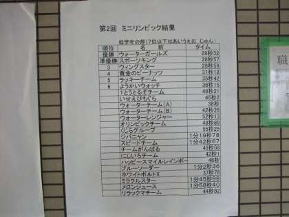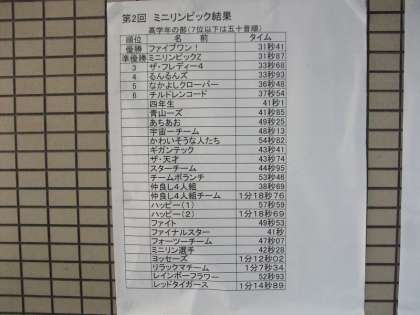 先日行われた運動委員会主催の「ミニリンピック」の結果発表があり、低学年の部・