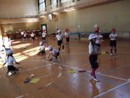 「とびなわをかたづけましょう。」という言葉かけにもさっととぶのをやめて