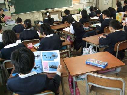 チャイムが鳴る前に本を選んで席について読み始めています。