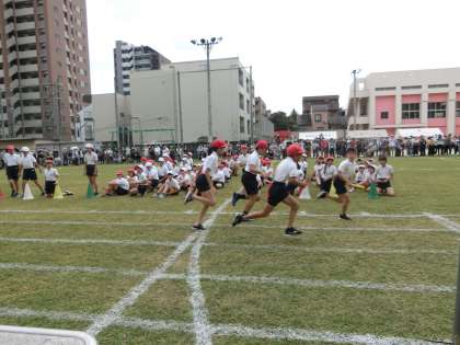 5年生は、トラック1周の徒競走とリレーに取り組みました。