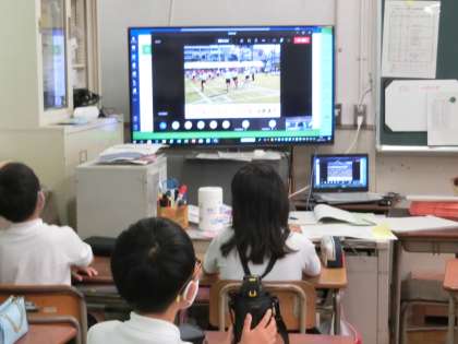 今回は、2学年毎の分散開催によるミニ運動会のため、子どもたちにとっても観覧していない学年があったことから、とても興味深く画面を観ていました。