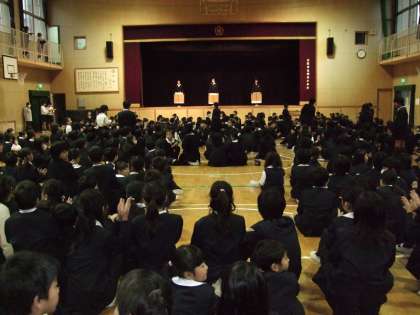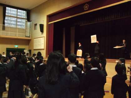 1回戦は、集会委員の出すグー・チョキ・パーのカードに「勝った人」が勝ちです。