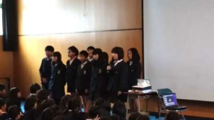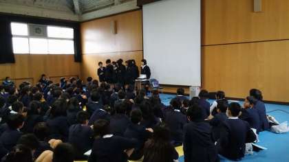 今日は6年生が、午後から菫中学校へ出かけ、小中交流会に参加してきました。