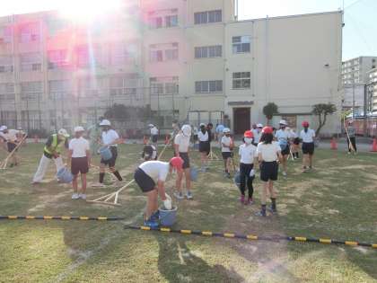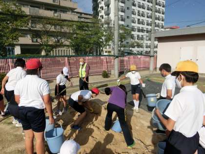 6年生の児童と保護者のみなさん、そして地域のみなさんがとてもチームワーク良く作業を進めていただきました。