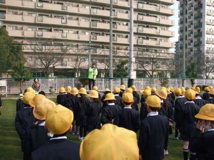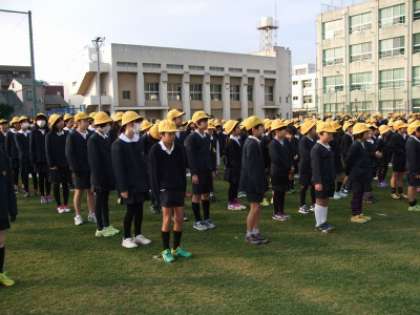 今朝は、3学期はじめての児童朝会を運動場で行いました。
