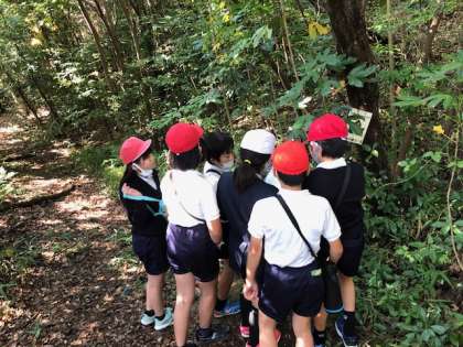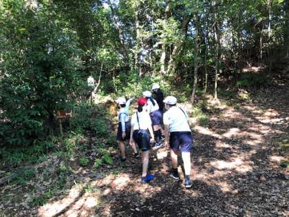 ハイキングプログラムです。班でクイズに挑戦しながら進んで行きます。意外と難しくて、みんな苦戦しています・・・
