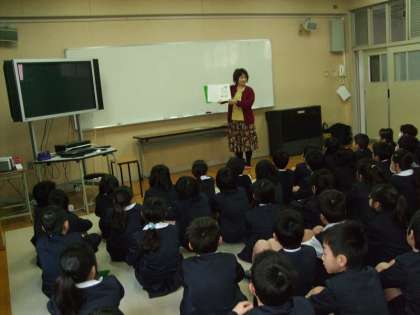 今朝も「おはなしビスケット」のみなさんの絵本の読み聞かせがありました。