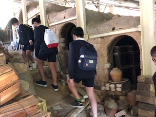 登り窯を見学しました。くわしい解説をお聞きしました。