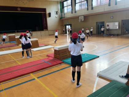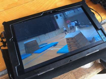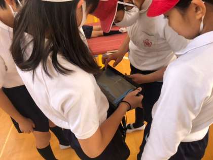 体育の学習「跳び箱運動」では、タブレット端末を使用し、共に練習する仲間との「学び合い」を大切にしています。友達の練習を動画で撮影し、すぐに自分の跳ぶ姿を確認。自分の良い点、改善すべき点がよくわかります。言葉ではなかなか伝えられないことも映像があると理解しやすいですよね。