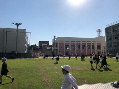 今週から使用できるようになった芝生。多くの方々のお力で、青々と茂っています。そんな素敵な芝生では、今日も多くの子どもたちが休み時間に遊んでいます。