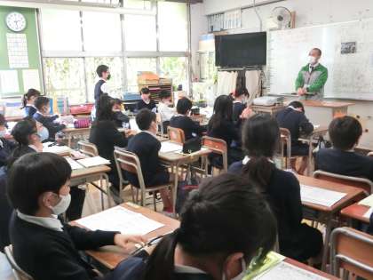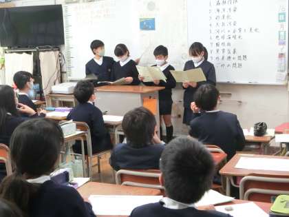 5年1組は、総合的な学習で環境問題について、グループでの調べ学習の発表を行いました。発表後には感想の発表もあり、しっかりと考えを深めていました。