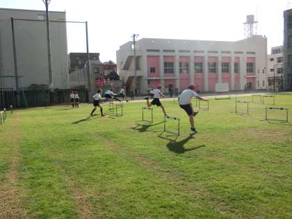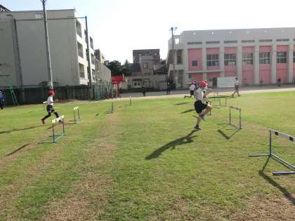 6年2組は、体育科でハードル走をしました。自分に合ったハードル間の距離や高さを選び、取り組みました。回数を重ねるごとに少しずつ速く走れるようになっていました。