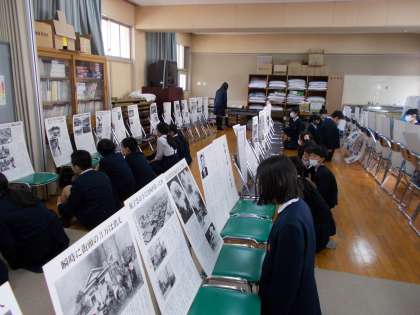 本来なら、戦争体験者の方の話を聞く予定でしたが、感染症拡大防止のため来ていただくことができず、第2次世界大戦や原爆の様子を伝えたパネルを見させていただきました。