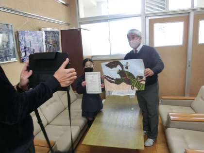 校長先生から転入生の紹介と絵画の優秀作品の表彰がありました。