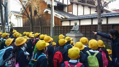 適塾というのは、4年生の社会科で大阪の発展につくした人として学習する緒方洪庵という医者・蘭学者が江戸時代後期に作った私塾で、その周りの建物も含めて、当時の様子を見学しました。