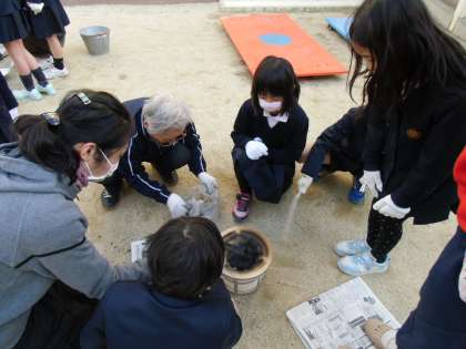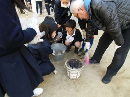 昔の道具の使い方を知るために七輪で火をおこす体験もしました。お家ではガスや電気ですぐに火をつかうことができるのに、時間をかけて火をおこす七輪は児童たちにとって新鮮だったようです。今日、学習したことをこれからの学習に生かしていきたいと思います。お越しいただいた地域の方、PTAの皆様ありがとうございました。
