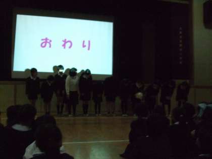 きょうは、飼育栽培委員会が毎日している活動についてスライドを使って発表