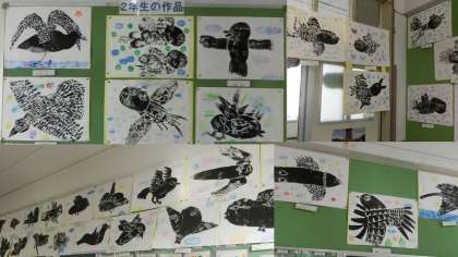 2年生 図工「紙版画-いっぱいうつして はばたく鳥-の制作」