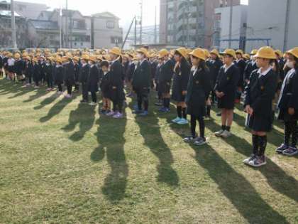 今朝は、あたたかい日差しの中児童朝会を行いました。