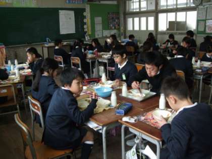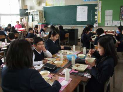 きょうは、教育活動支援員さんも一緒に給食を食べていました。