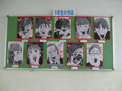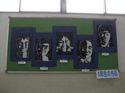自画像を版画であらわしました。陰影を考えながら彫り進めていくのが