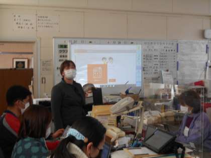3月中に、1人1台端末のパソコンを使用していくために、教職員もICT支援員の方から研修をしました。