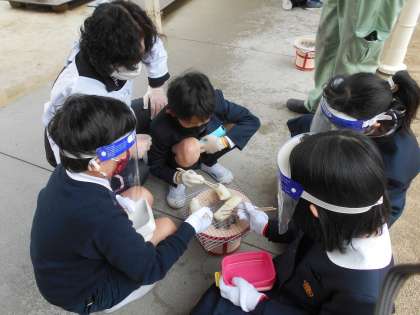 教室では、感染対策のため静かに食べました。子どもたちは笑顔でおいしそうに食べていました。七輪で焼いたおもちは、本当にやわらかくて焦げたところが香ばしく、とてもおいしく出来上がりました。