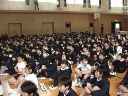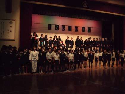 学校全体でこういう集会ができるところも関目小学校の良い点だと思います。