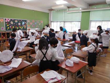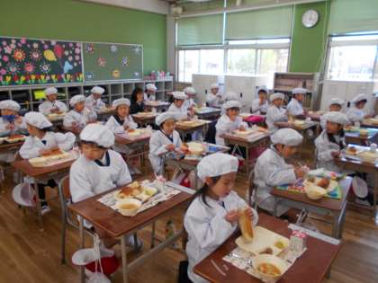 初めての給食は、1年生のかわいい姿が印象的でした!