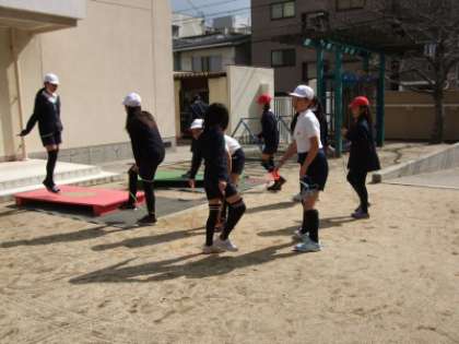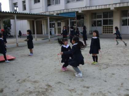 冷たい風が吹いても子どもたちは元気に運動場に出て遊んでいます。