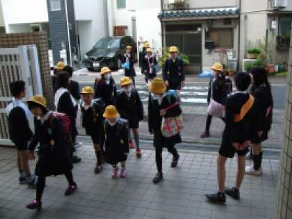 今回は、学級代表と各学級から2名ずつ担当を決めて、校門やエレベーター前・