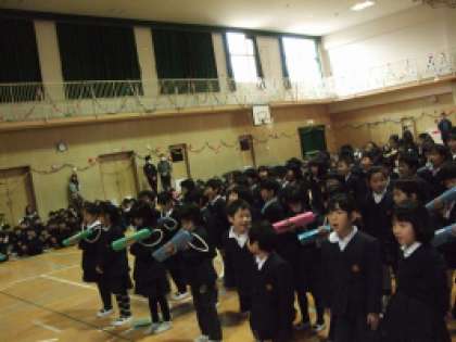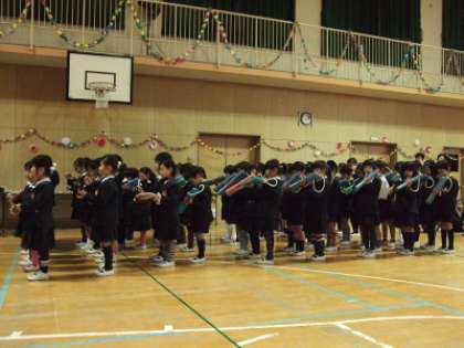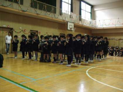 はじめの言葉に続いて、在校生から歌や合奏のプレゼントが贈られました。