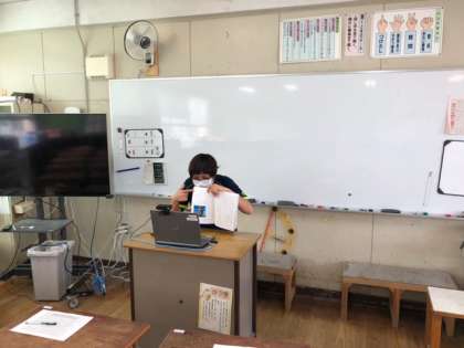 その後、国語の「イースター島にはなぜ森林がないのか」の音読に取り組みました。ひとりひとり、丸読みで進めましたが、どの子もしっかり大きな声で読むことができました。