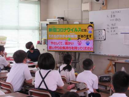 今日の校長先生からの講話は、「新型コロナウイルス感染症から健康と安全を守ろう」という話です。