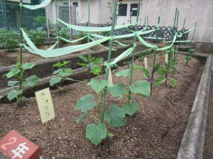 学習園のきゅうり、なす、ピーマン、オクラたちも生長しています。