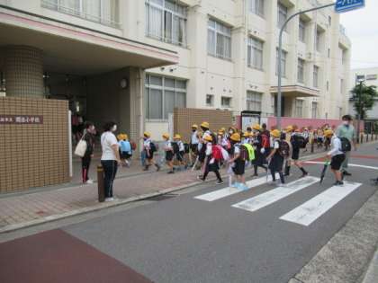 子どもたちは、朝、定時の時間帯に集団登校しました。