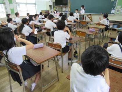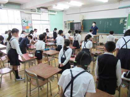 また、各学級では、健康観察や今日の一日についてのお話等、担任の先生からの話や子どもたちが進める朝の会をしています。