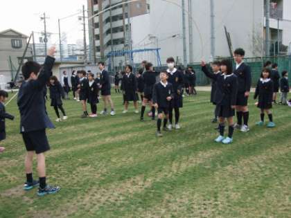 昨日と比べ今朝は、暖かい日差しを浴びて芝生運動場いっぱいに広がりました。