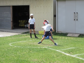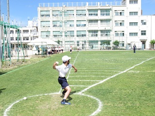 写真は、ソフトボール投げの様子です。