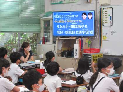 わたしたちの関目小学校は、となりの榎並小学校から分かれてできた学校です。そして、この関目小学校から、すみれ小学校と関目東小学校が分かれていきました。