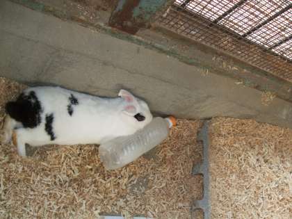日中は小屋に差し込む日差しを避け、おなかをべったりコンクリートの床やひんやりするパネルにつけて寝ています。