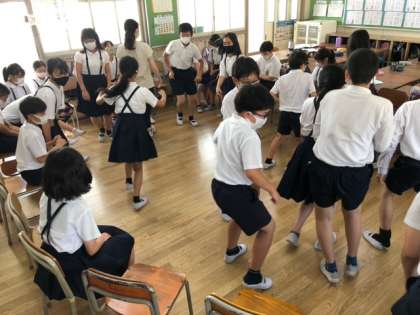 ひとりひとり、名前や好きな教科、好きな○○と、簡単に自己紹介をしました。その後、何でもバスケットをし、お互いを良く知ることができました。