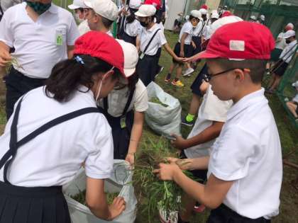 なるべく根から抜くように気をつけながら、一生懸命に雑草を抜いていました。頑張って抜いた雑草を持って「いっぱい抜いた!」と喜んでいる姿が見られました。その成果もあり、見事に地面がスッキリしました。
