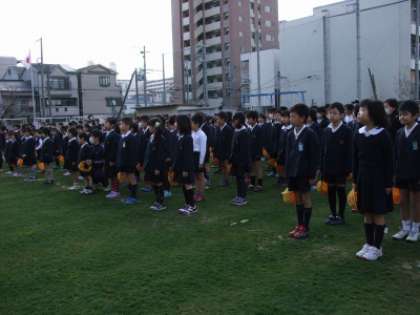 昨日の暖かさとうって変わって肌寒い朝でしたが、みんな元気に運動場に