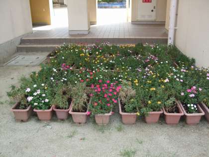 毎年PTAの方々に植え替えや水やりの世話をしていただいています。